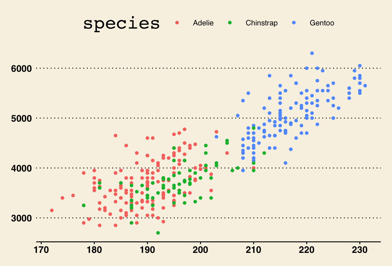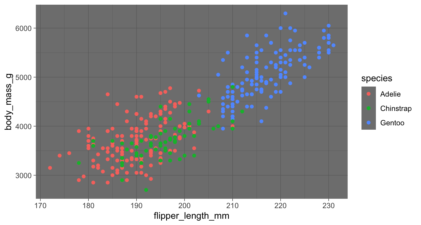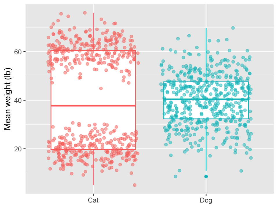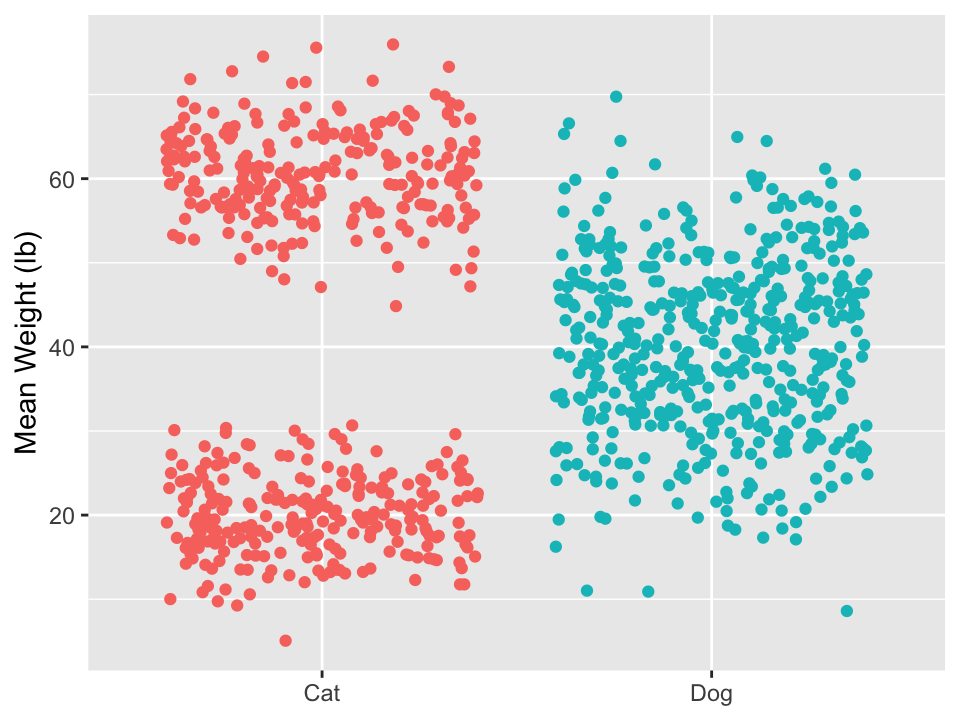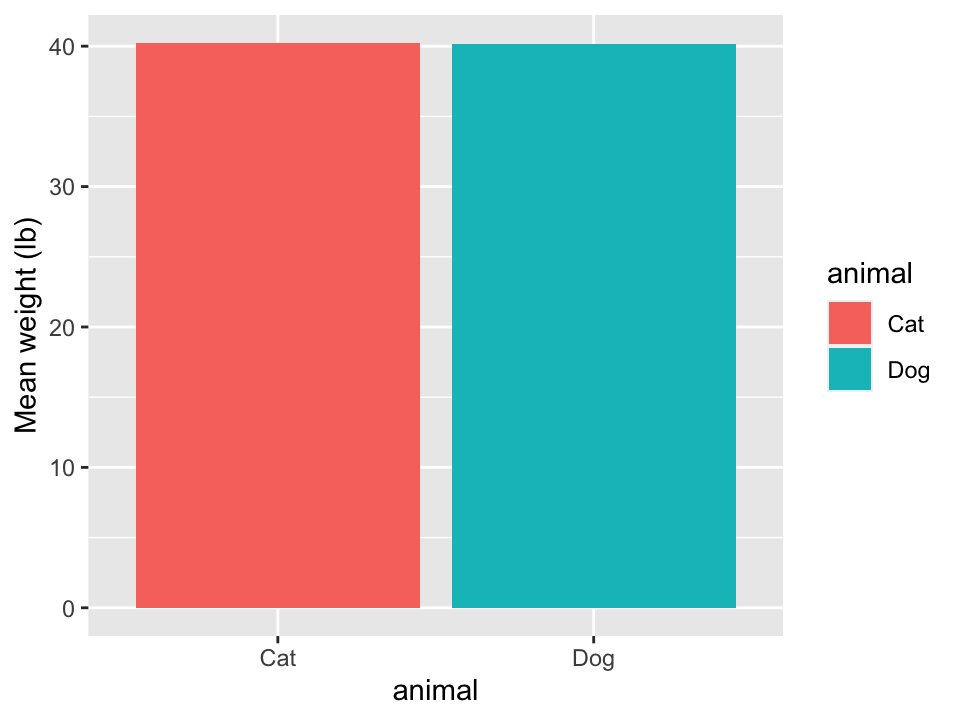 x, y, color, shape, and more.Suppose we have the following data on animal weights. How can we compute the average weights of cats and dogs? [example from Andrew Heiss]
