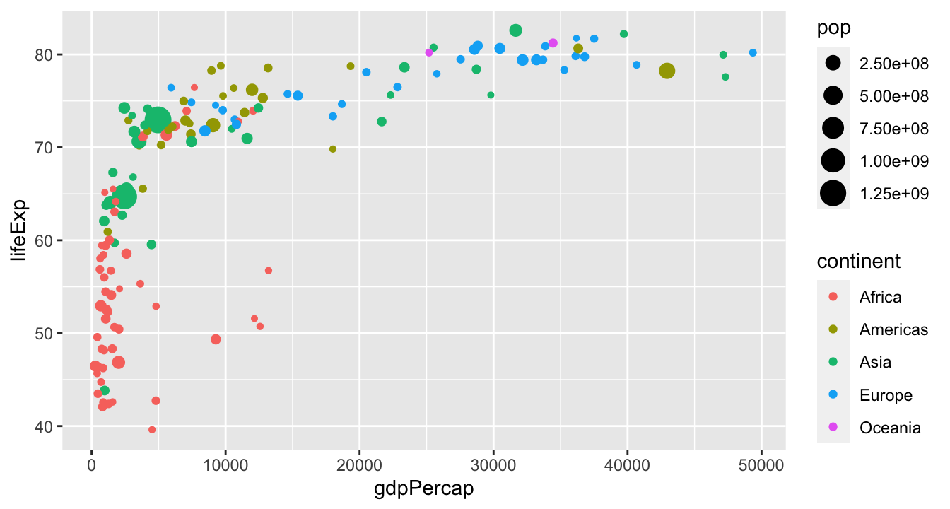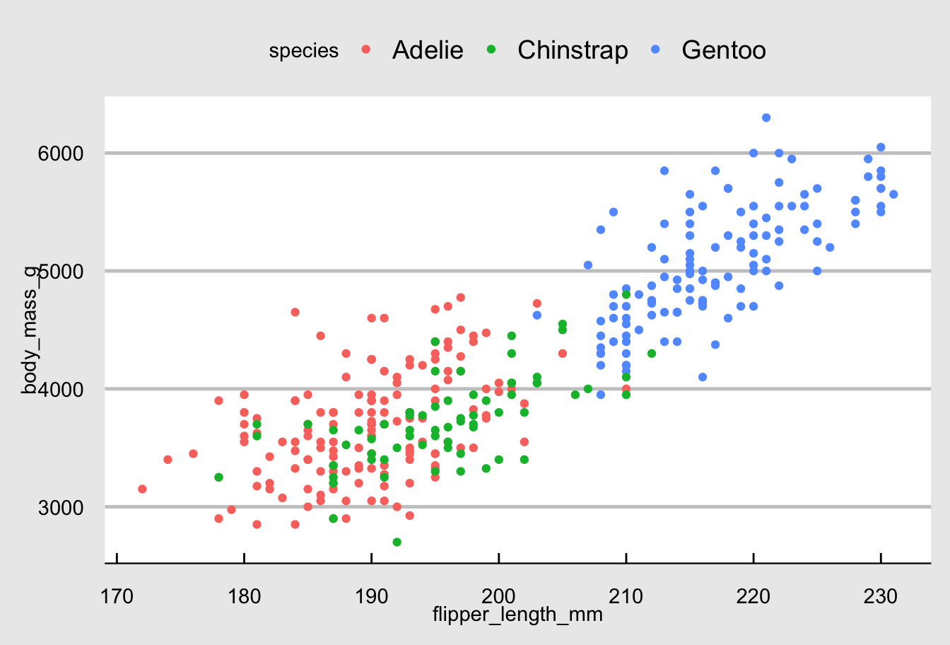 ggplot2 provides a default theme: gray background, basic discrete color scheme, etc.