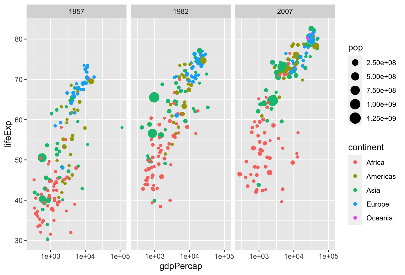 We can often make comparisons clearer by splitting a plot into many “small multiples” which have the same axes: