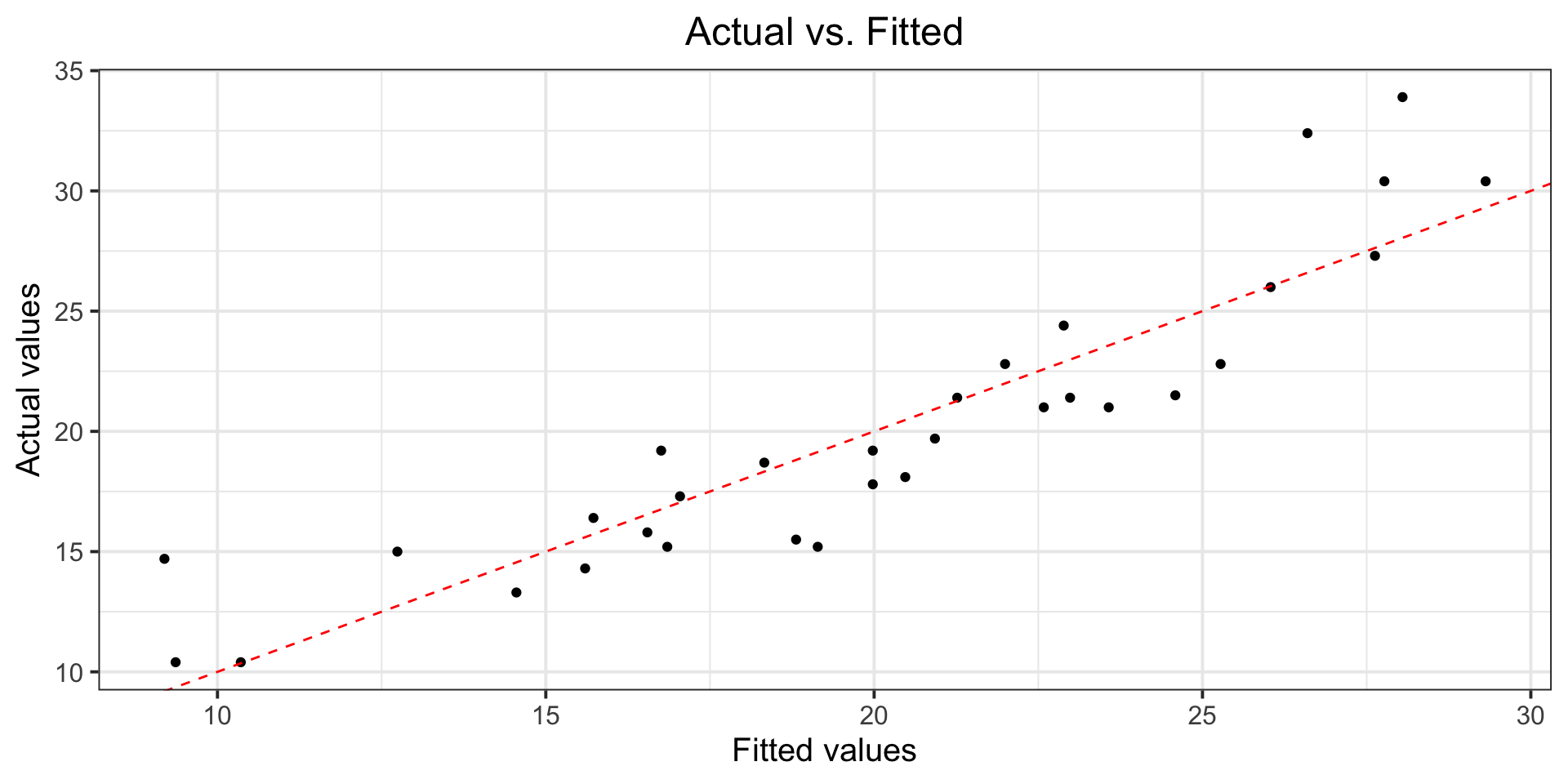 my_df <- data.frame(actual = mtcars$mpg, fitted = mod_fits)