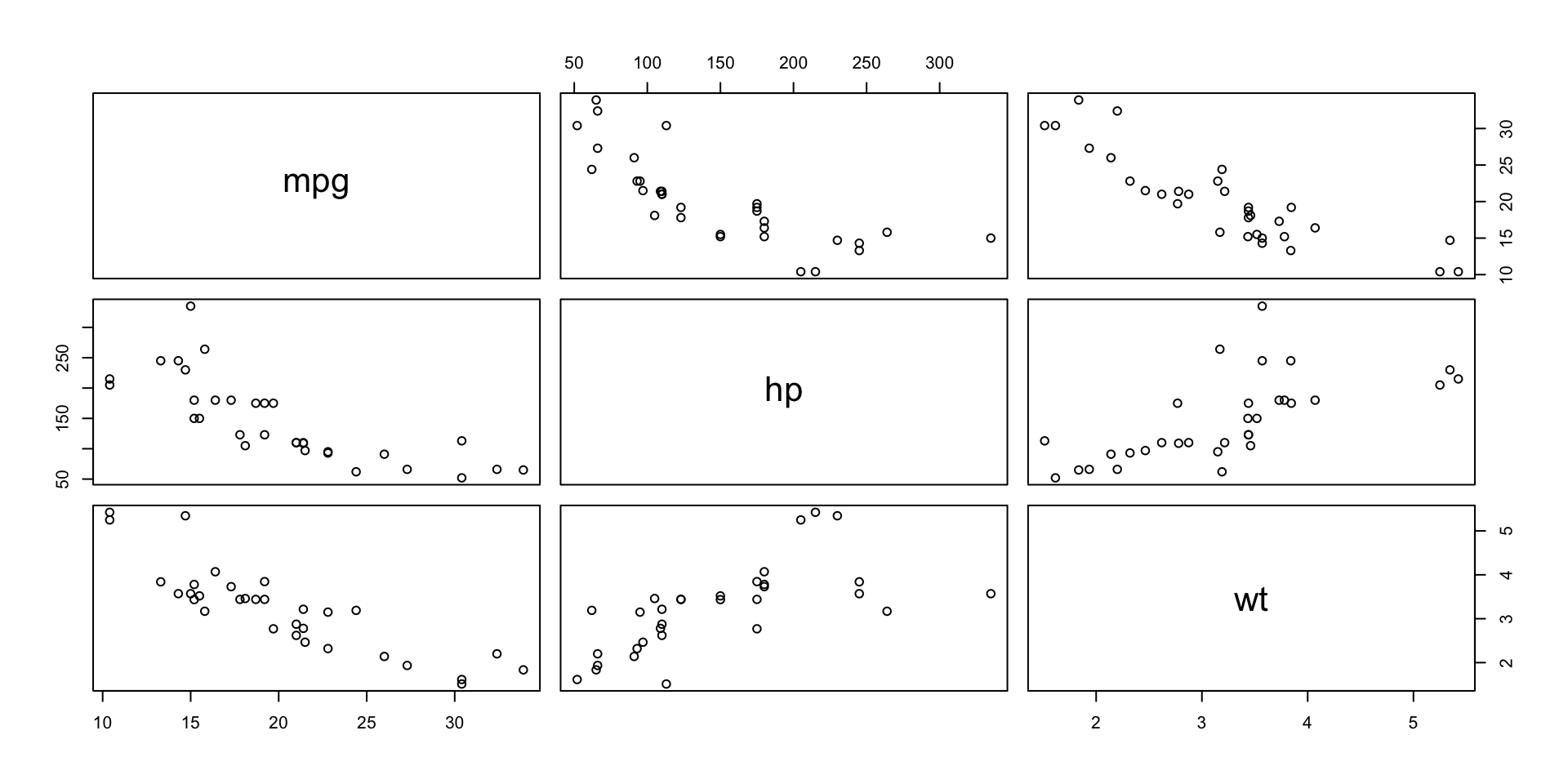 : operatorUse X1:X2 to include an interaction effect in your model. This is useful if you have reason to believe two covariates interact, such as gender and education in a wage model. In our case, we’ll assume horsepower and weight interact in their effect on mpg.