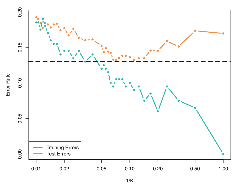 In order to choose an “optimal” \(k\), it is common to use cross-validation:
