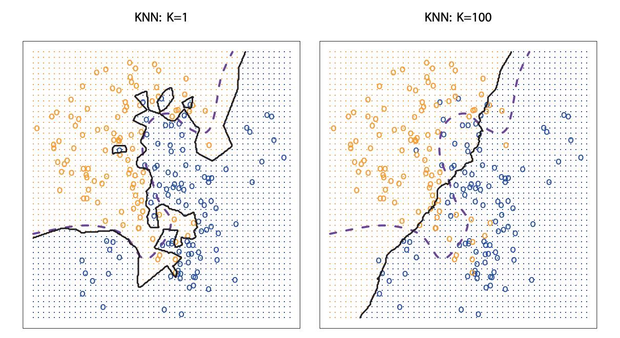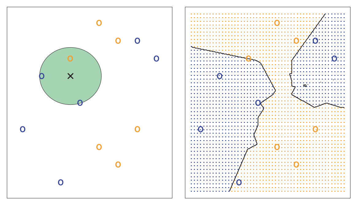 Output: Predicted class \(\widehat{Y}^*\), the most common class from \(X_{(1)},\ldots, X_{(k)}\)